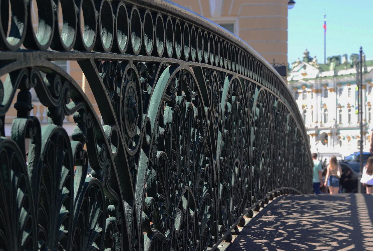Певческий мост – один из самых красивых в Петербурге. Его главная достопримечательность – чугунная решётка, которая своим изящным рисунком не похожа ни на одну другую ограду города.