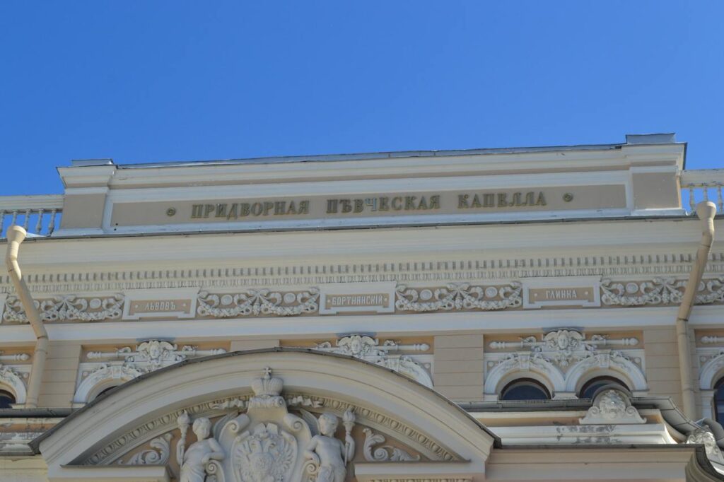 Рядом со знаменитым мостом расположено трёхэтажное здание солнечного жёлтого цвета с белой отделкой в стиле эклектики – Государственная академическая капелла Санкт-Петербурга.