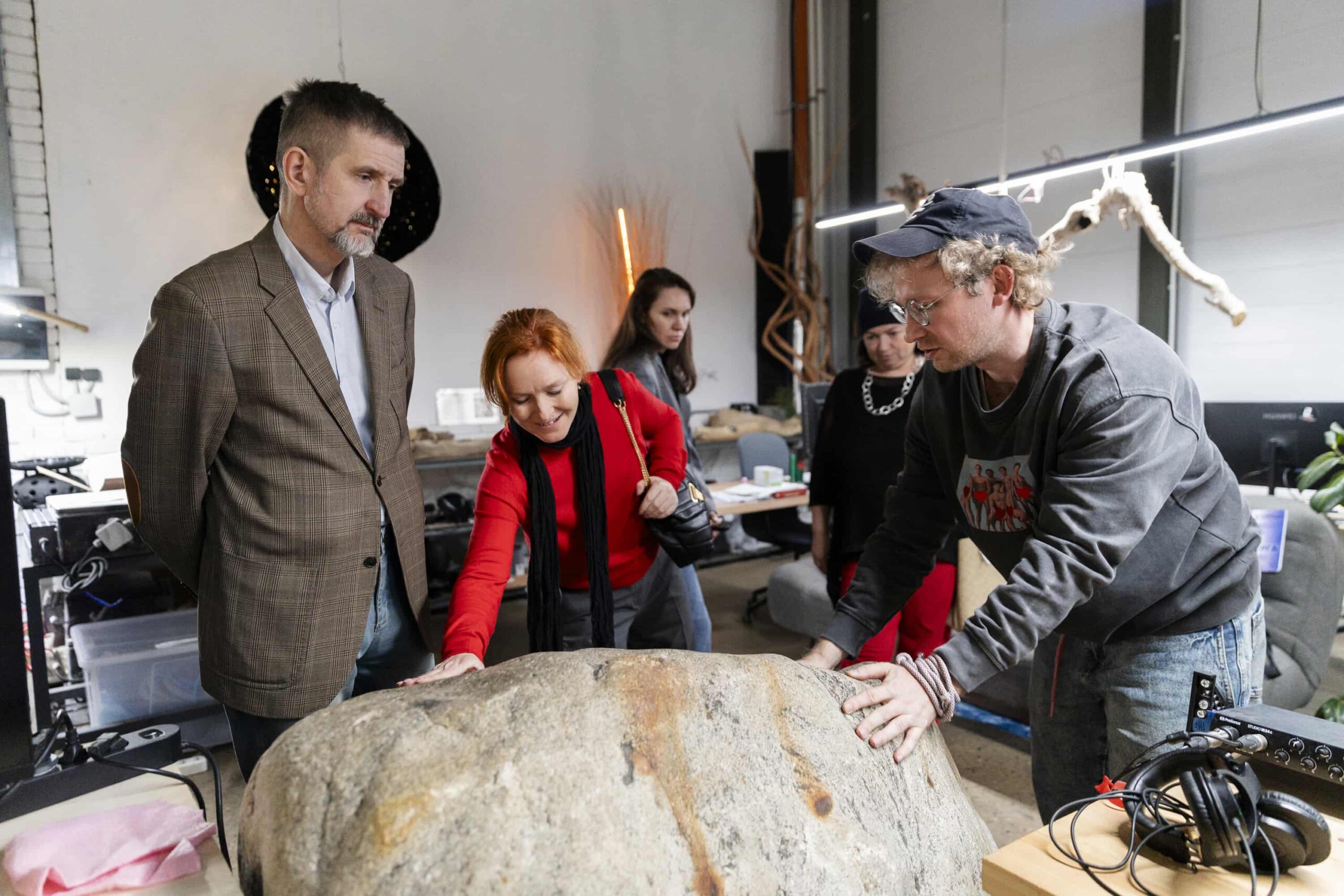 Также в мастерской представлен «музыкальный булыжник» — его прототип реагирует на прикосновения, преобразуя силу и направление движения в звук через геофон и датчики. Полноразмерная версия будет установлена на проспекте Просвещения весной.
