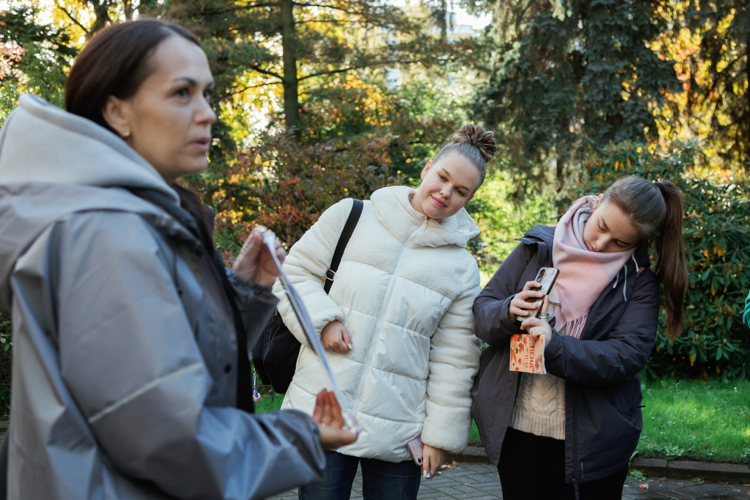 Во время прогулки по Ботаническому саду участники искали деревья, которые встречаются на гербах российских городов: дуб, рябину, липу, берёзу, ель, лиственницу и яблоню. В итоге для герба креативных индустрий одна из групп выбрала берёзу.