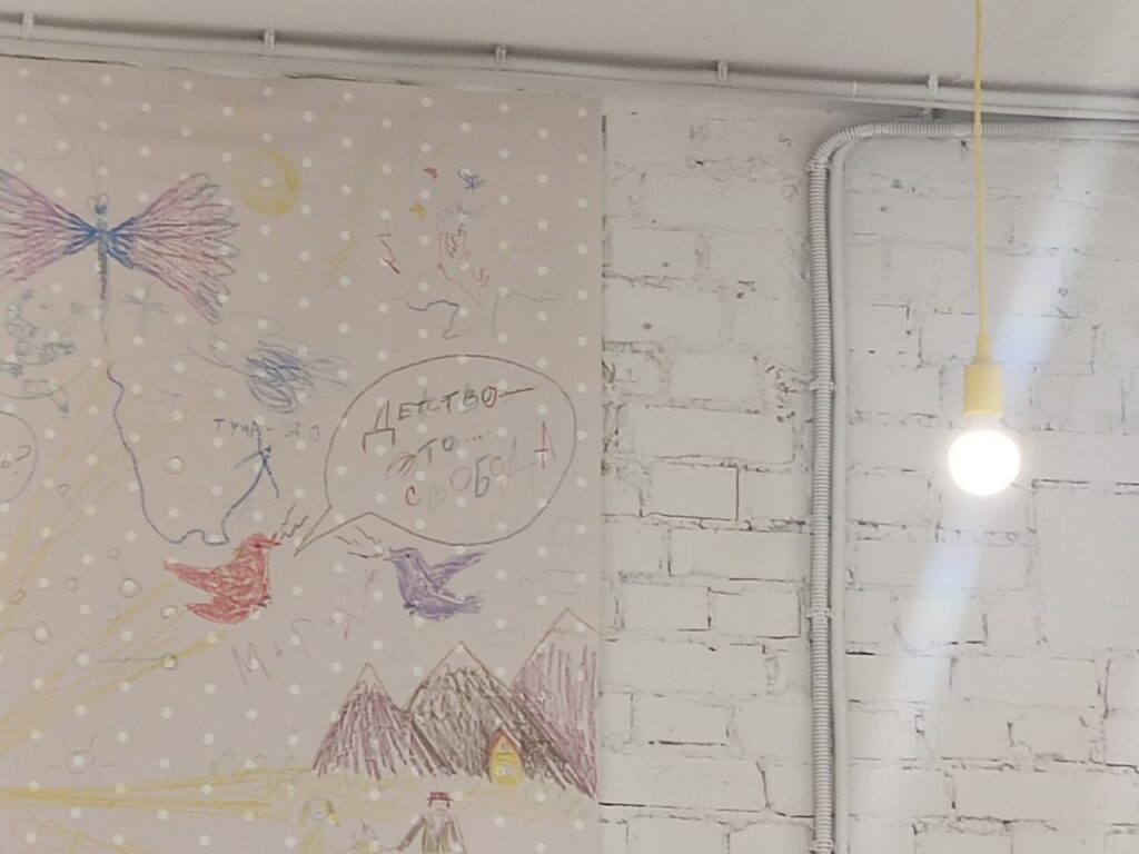«Здесь всегда должен быть включена специальная синяя подсветка. Но дети быстро поняли, что если один раз выключить свет, настройки слетают и лампы начинают мигать! И они постоянно так делают, чтобы устроить дискотеку, чтобы все стало еще более ярким. Наблюдать, как дети «обживают» пространство — заворачиваются в ковер, залезают под объект, придумывают тут свои игры — прекрасно».