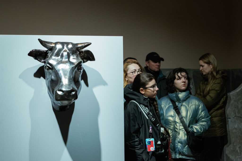 Осмотрев Павильон высочайшего присутствия, где останавливались члены царской семьи или их высокопоставленные гости, участники экскурсии заглянули в исторически воссозданное помещение телятника. Теперь его украшает инсталляция «Источник» в рамках выставки «Crypto/Ферма».