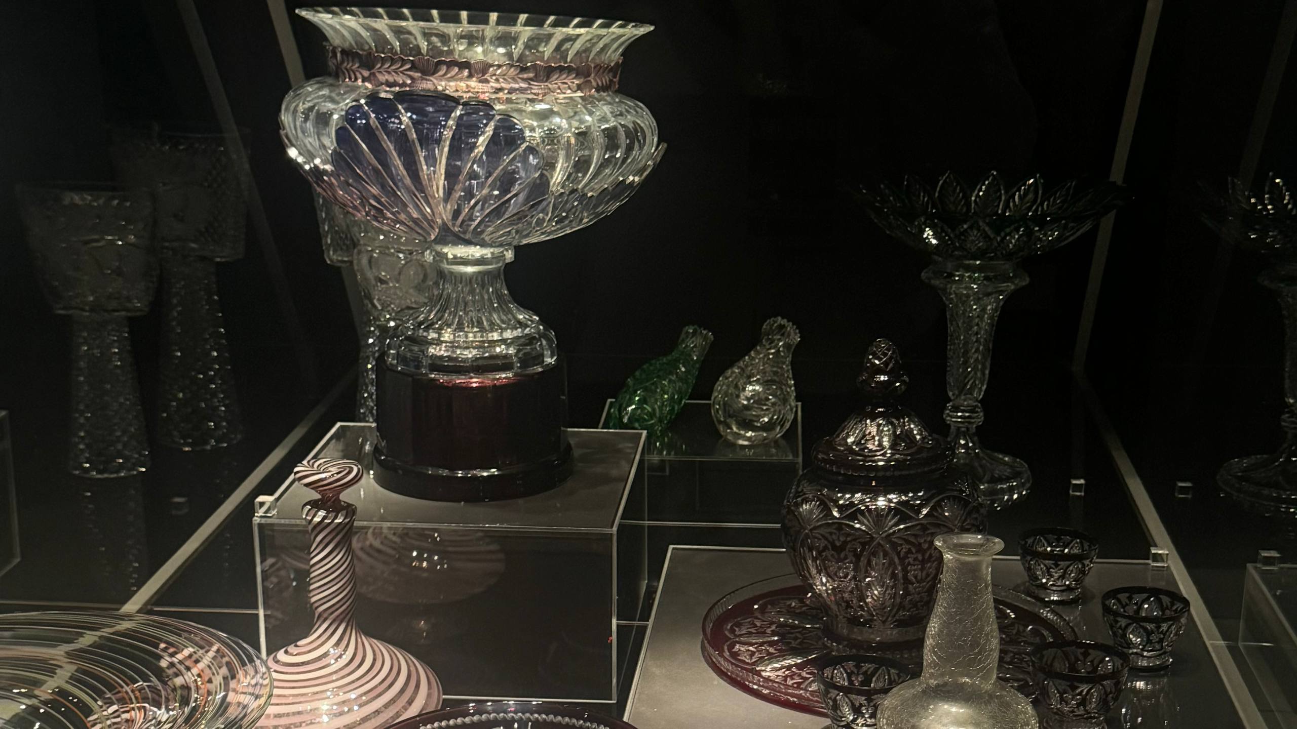 После знакомства с процессом создания стеклянных изделий гостей ждала экскурсия «Лёд, рождённый в огне». В Музее художественного стекла, расположенном в бывшем Оранжерейном корпусе Елагиноостровского комплекса, они увидели более 700 уникальных экспонатов — часть богатой коллекции Ленинградского завода художественного стекла.